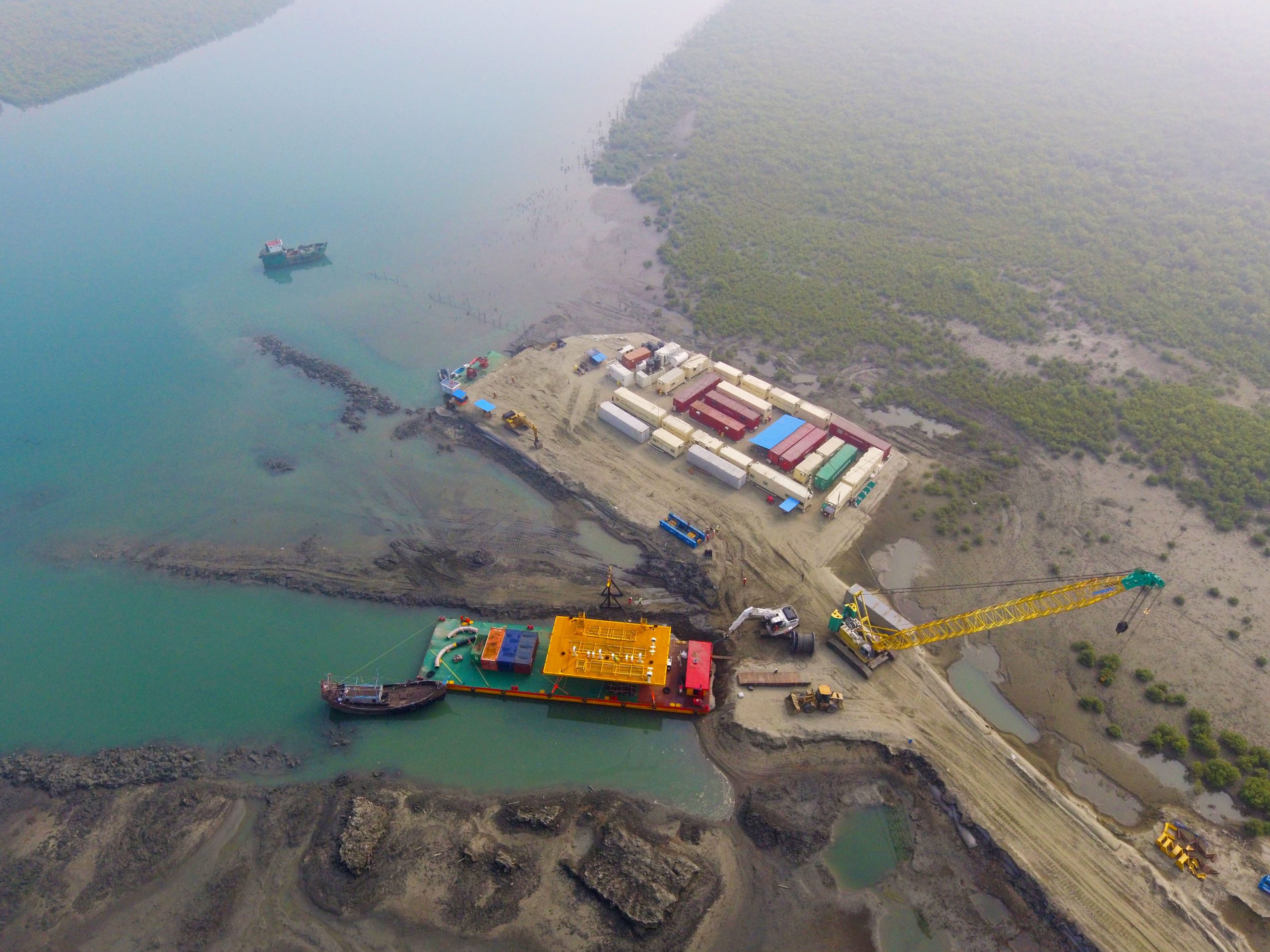 The Bangladeshi coastline presents constraints that are typical of our operating environments: currents of up to 5 knots, a seismic zone, exposure to cyclones/hurricanes, tides of up to 4 m, and heavy sedimentation from the Himalayas, resulting in changing bathymetry. Added to this, at the time, was the lack of robust port infrastructure to secure large-scale project logistics: all factors that left no room for improvisation.